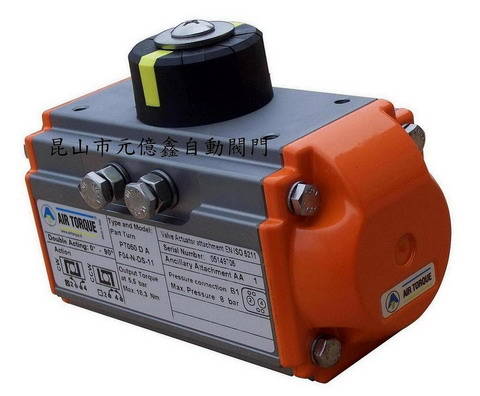 意大利AIR Torque气动执行器"PT"系列,材料为合金铝经氧化处理。"PT"系列是AIR Torque公司研发**新一代齿轮齿条式气动执行机构,综合了**新技术和实用材料开发改进而成,具有以下特点: 1.秉持高质量、高质量、高可靠性 2.结构紧凑流线 3.现代化美学造型设计更增工业艺术的美感 4.高性能动作、准确度高 5.设计具创新性 6.全部设计符合**新国际标准规范 7.高水平高效率不受环境的影响的表现更显其优异的技术 8.表面以优越的新涂料保护,表现出优异之防腐技术,产品应用范围更广 9.多规格的产品选用更经济实惠 10.具有专利的通用输出轴和多功能指示器可选用,可以选择双动(DA)、单动(SR)、供给气源在5.5 bar時可提供扭力從 6.7~9173 Nm。动执行器可选用的附件:功能指示器、电磁阀、限位开关盒、接近式传感器、定位器。