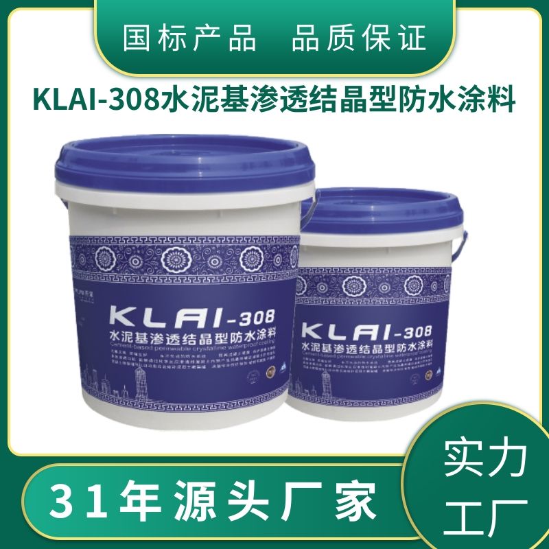 KLAI-308水泥基渗透结晶型防水材料是一种优良且绿色环保的防水材料,适用于混凝土防水工程。产品与干净水混合后涂刷在混凝土表面,可以提高混凝土的致密性,并以此来达到结构自防水目的。使用本产品还能达到提高混凝土强度和保护钢筋的作用。