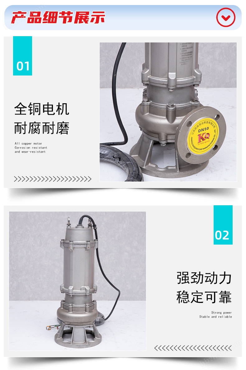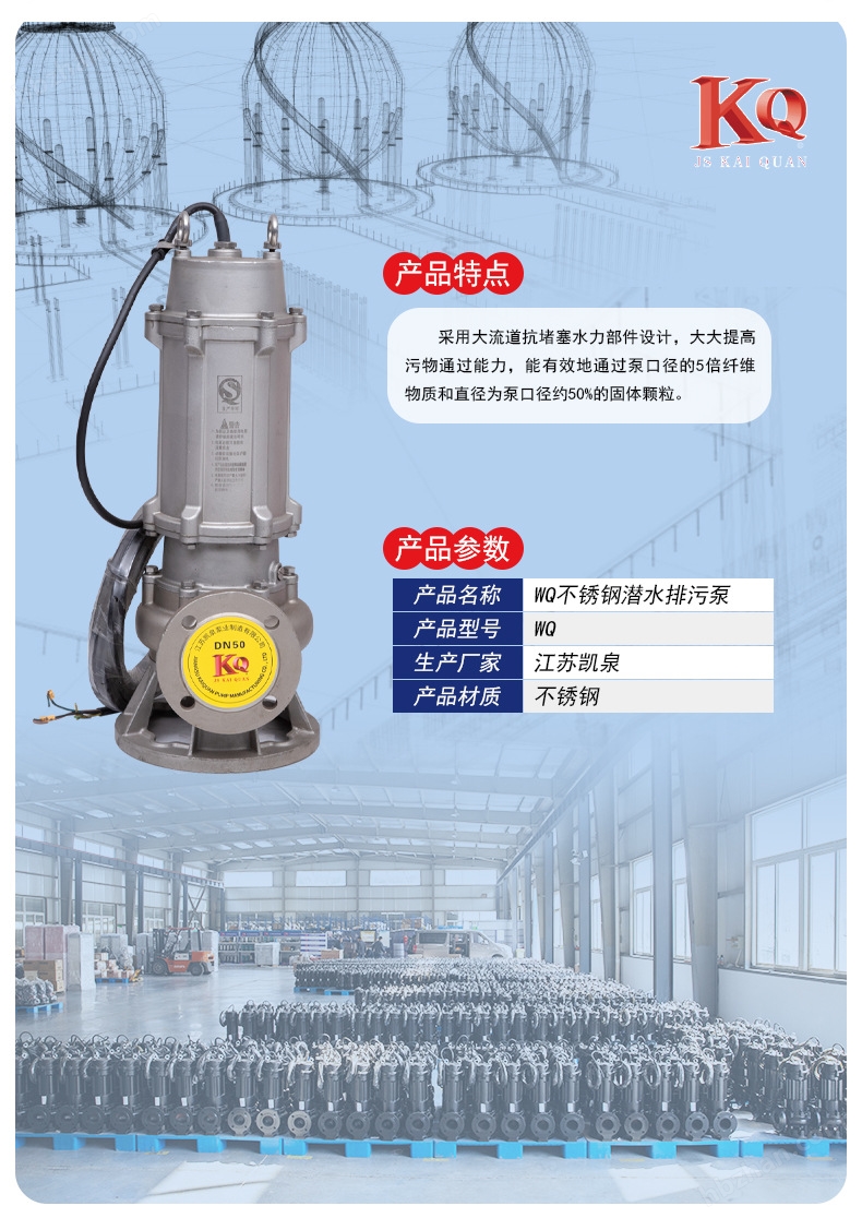 QW型潜水排污泵整体结构紧凑、体积小、噪声小,无需建泵房,潜入水中即可工作,大大减少工程造价。