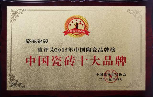 热烈祝贺骆驼陶瓷被评为2015年中国瓷砖**品牌