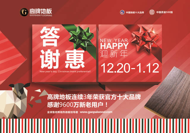 高牌地板圣诞元旦 感恩答谢惠来了!