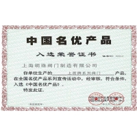 中国名优产品荣誉证书